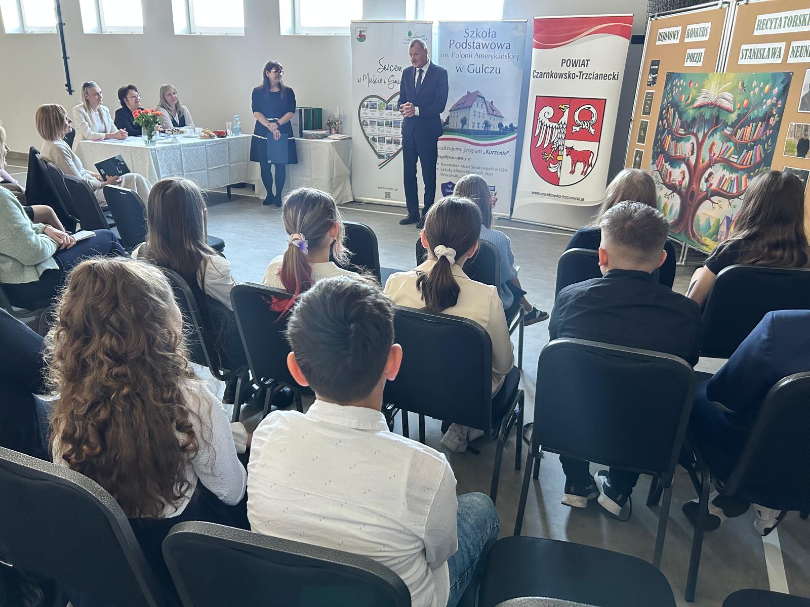 15 kwietnia 2026r. w Szkole Podstawowej im. Polonii Amerykańskiej w Gulczu odbył się po raz kolejny konkurs poezji poświęcony twórczości lokalnego poety – Stanisława Neumerta. Mimo iż w styczniu z wielkim żalem i bólem pożegnaliśmy Mistrza, jego twórczość żyje, nieustannie uszlachetnia i uzdrawia nasze serca. Wydarzenie organizowane od ponad ćwierć wieku i zainicjowane przez panią Iwonę Bajran, niezmiennie stanowi ważną inicjatywę kulturalną oraz jest okazją do obcowania z niezwykłą wrażliwością artystyczną poetyckich poszukiwań autora.